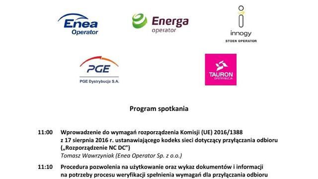 W sierpniu i wrześniu zaczną obowiązywać odpowiednio zapisy kodeksu sieci NC DC, zawierające wymogi dotyczące przyłączania nowych odbiorów do sieci oraz NC HVDC zawierające wymogi dotyczące przyłączania do sieci systemów wysokiego napięcia prądu stałego oraz modułów parku energii z podłączeniem prądu stałego. Spotkanie informacyjne w tej sprawie odbędzie się 6 sierpnia 2019 r. w siedzibie Polskich Sieci Elektroenergetycznych. Będzie to kolejne wydarzenie z cyklu spotkań otwartych i konsultacji dotyczących kodeksów sieci.